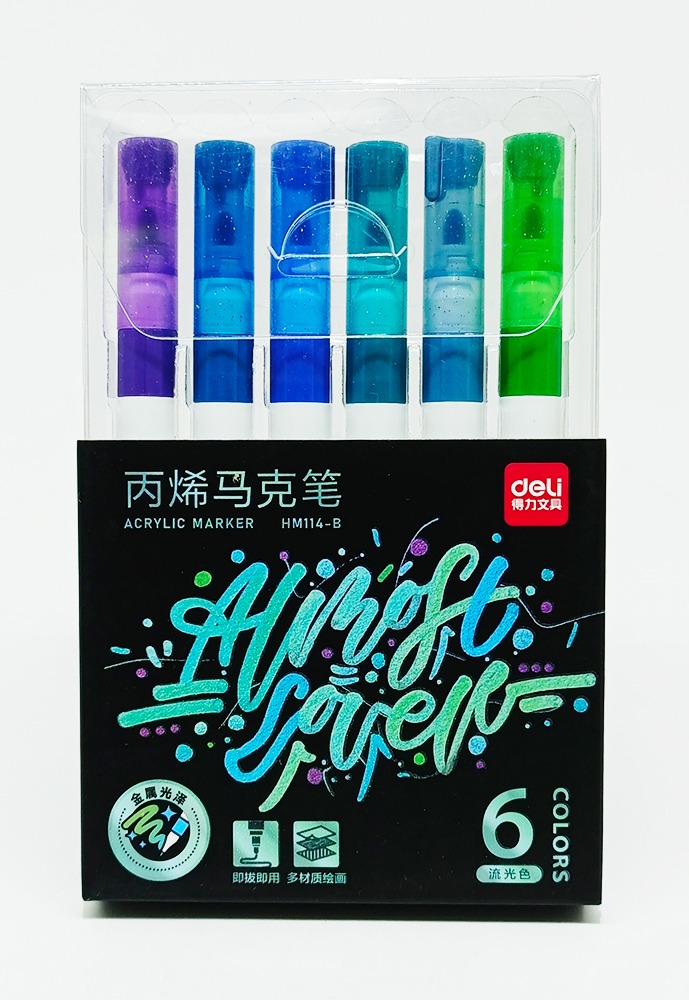 Marcador Metálico 6 colores DELI Acrílico Punta Redonda Colores FRÍOS HM114-C