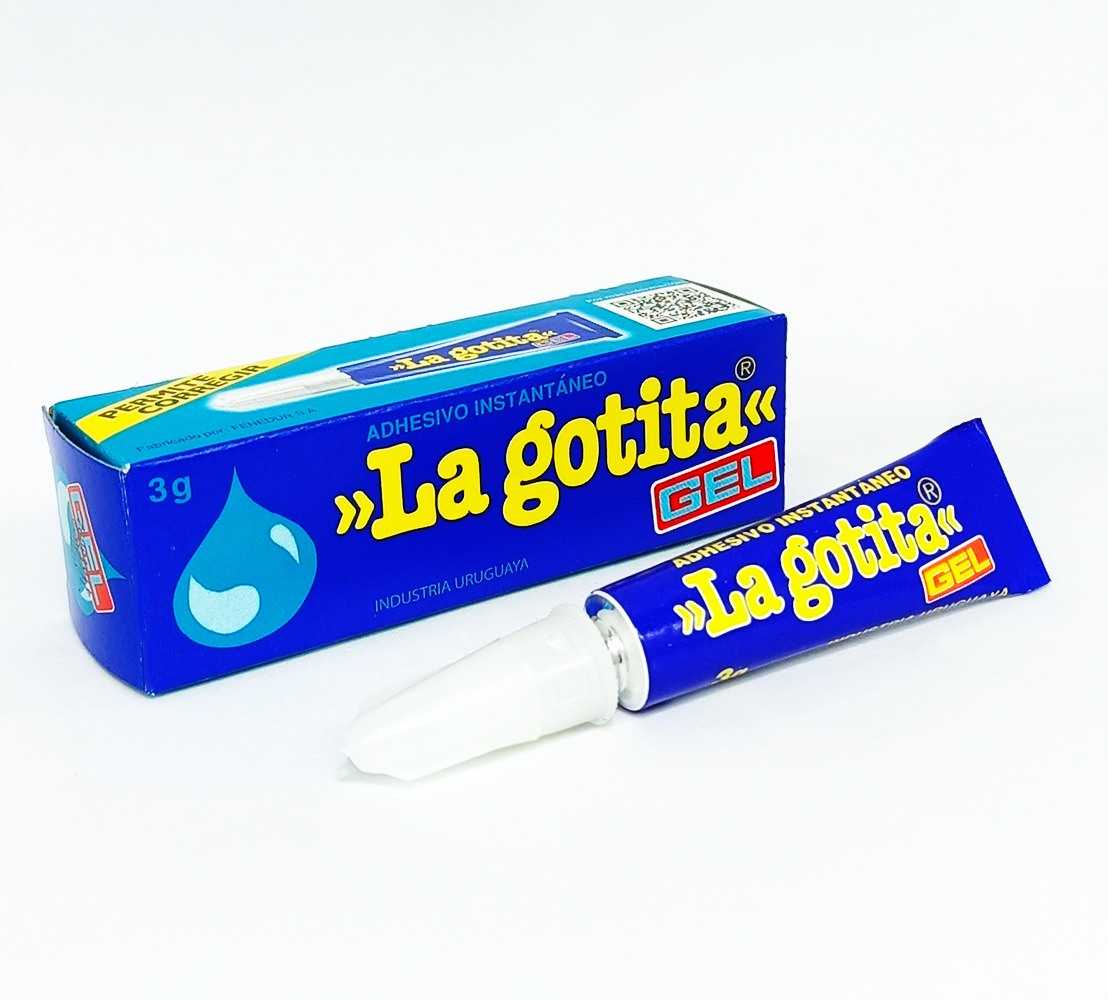 - La gotita® es un pegamento instantáneo, fácil de usar, para pequeños arreglos en el hogar, que pega en pocos segundos prácticamente todo tipo de materiales.