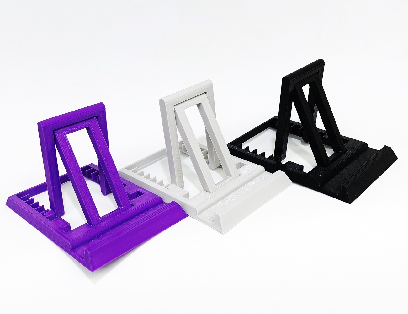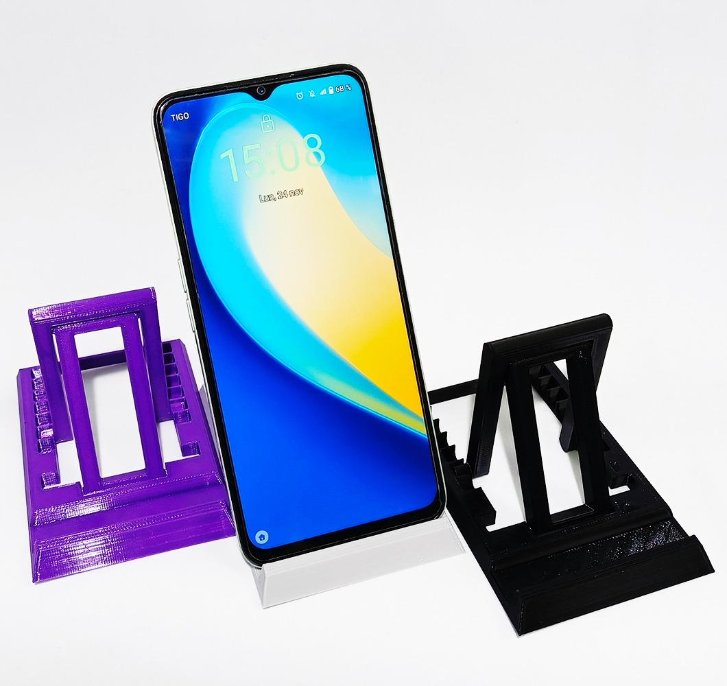 - Soporte porta celular de plastico plegable con varios ángulos de inclinación.