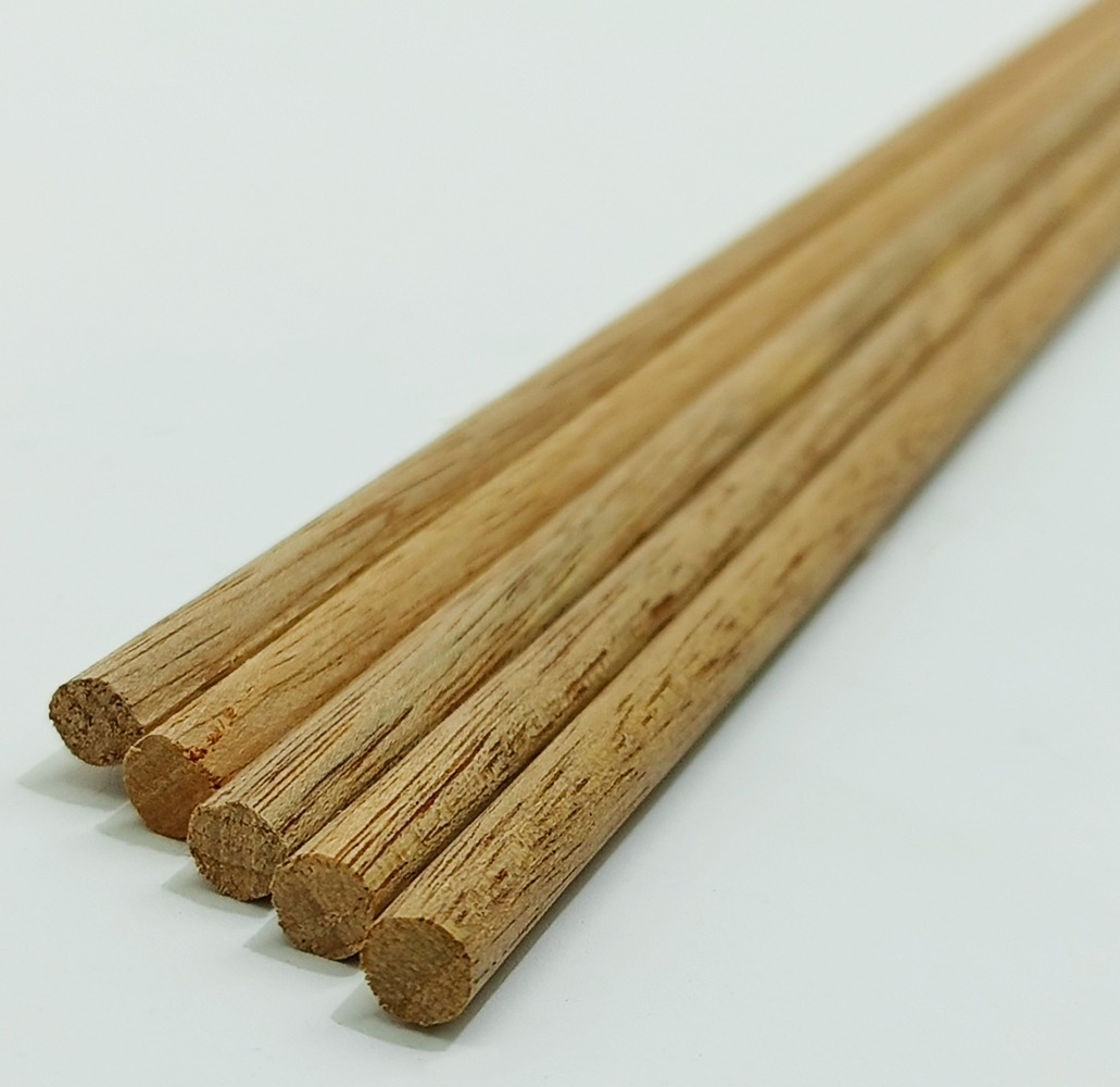 - Varilla redonda de madera Raulí dura disponible en diferentes grosores.